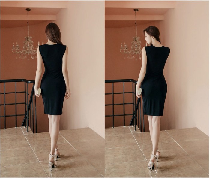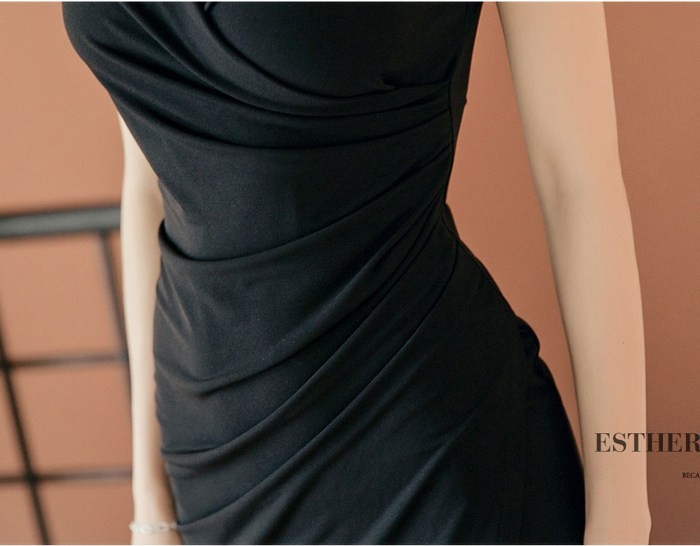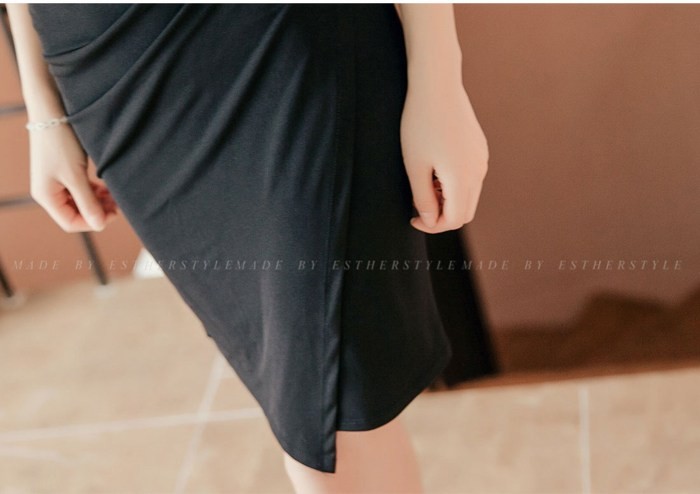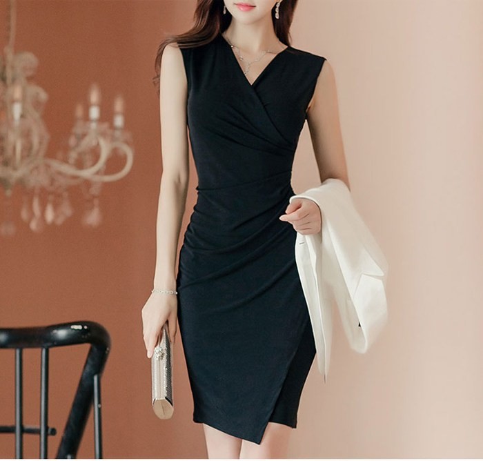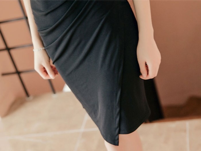商品名:ワンピース カシュクールワンピ 無地 ノースリーブ 膝丈 きれいめ フォーマル