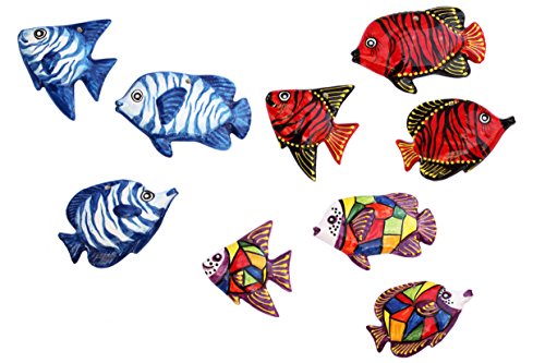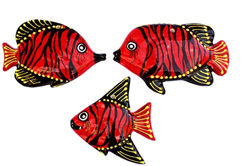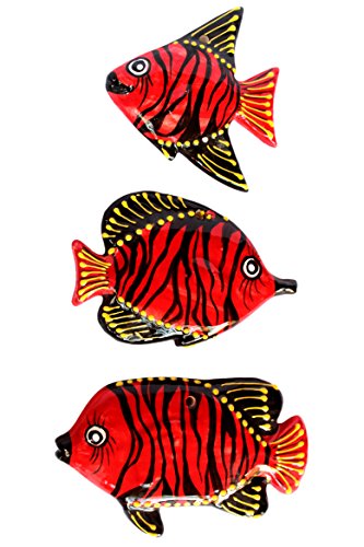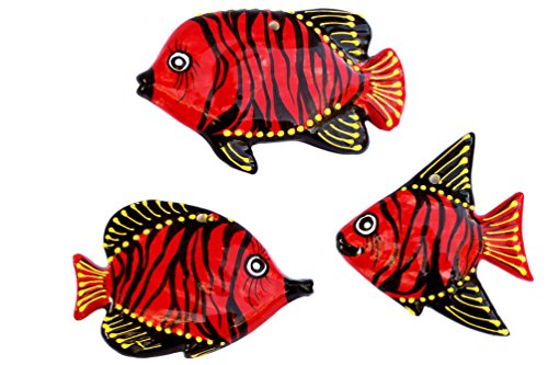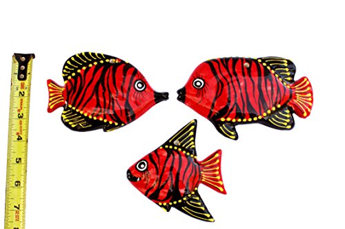 Tahiti Red Ceramic Fish Wall Hangers - Set of 3 - Hand Painted From Spain