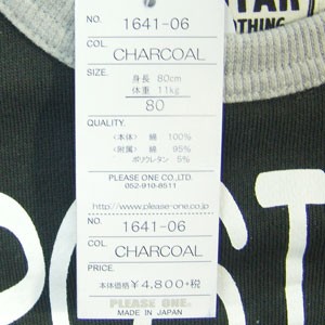 | 【ベビー服・子供服のプリーズワン】 ベビー・キッズからジュニアまで幅広いサイズを取り扱っております。 ポスター、ラスクをはじめ人気のスポーツブランドも取り扱っています。アウトレット 訳あり商品 季節セール 送料無料商品などお得なコーナーや入園入学準備 お祝い プレゼント カジュアル服 インポートなどの子供服が揃っています。 ●全国一律送料540円(税込) ●5,400円(税込)以上お買い上げで送料無料! ●メール便 164円(A4サイズ厚さ2cmまで) 82円(厚さ1cmまで) 【取扱いサイズ】 60cm/70cm/80cm/90cm/95cm/100cm/110cm/120cm/130cm/140cm/150cm/160cm 10cm/11cm/12cm/13cm/14cm/15cm/16cm/17cm/18cm/19cm/20cm/21cm/22cm/23cm XXS/XS/S/M/L/XL US:2T/3T/4/5/6/7/8/10 大人サイズ アダルトサイズも取り扱っています。 |