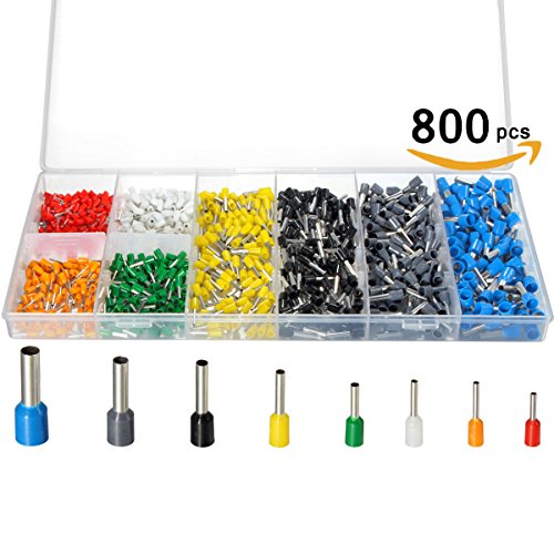 Wire Ferrules, Sopoby Insulated Crimp Pin Terminal Kit for Electrical Projects, AWG 24-10, 8 Sizes