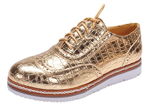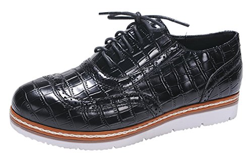 Nature Breeze Women's Wingtip Lace-Up Croc Embossed Flatform Oxford Shoe