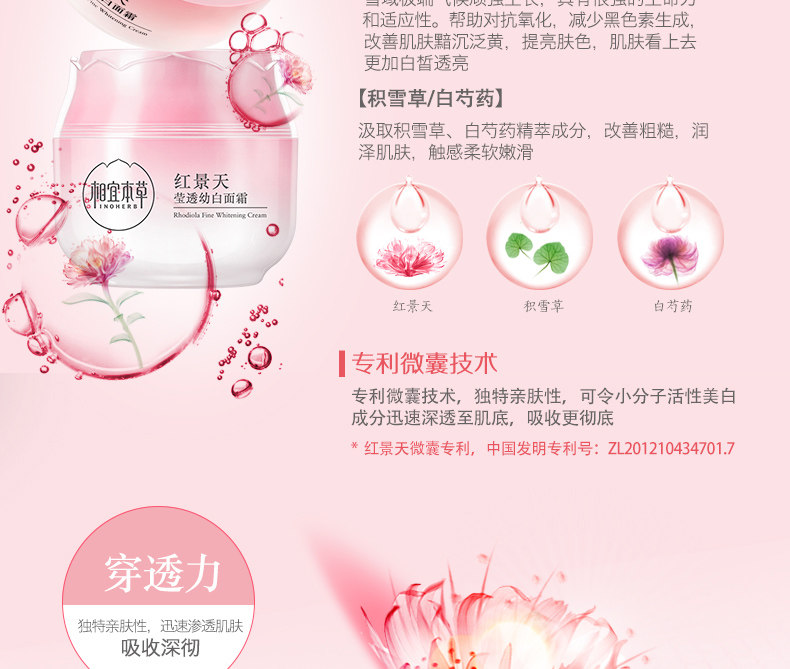 相宜本草红景天莹透幼白面霜补水保湿霜女