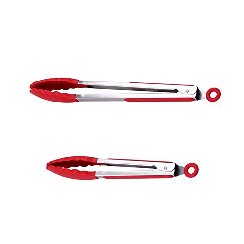 Silicone Barbecue Tongs 9" and 12" 2pcs Premium quality Silicone Food Tong Stainless Steel Kitchen Salad BBQ Cooking Clip (red)