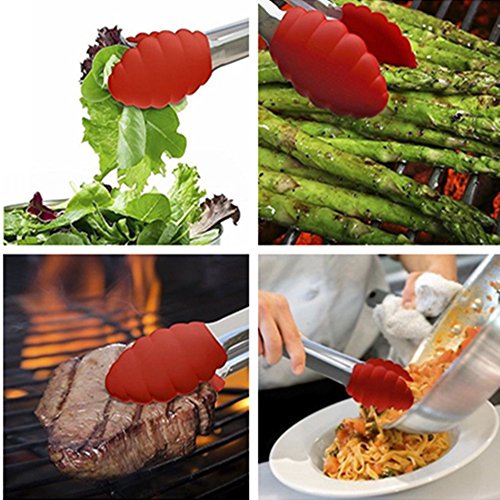 - AMAZING GRIP & NON-STICK FRIENDLY:With scalloped steel heads coated in silicone, tongs with silicone tips are firm and angled to offer amazing grip and control. Unlike pure stainless steel tongs, our silicone tipped tongs are non-stick friendly.
