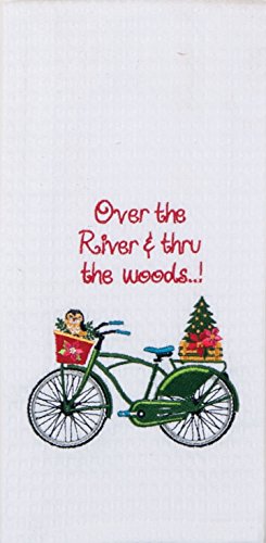 Kay Dee Designs "Over the River and Thru the Woods" Green Bike Embroidered Waffle Towel