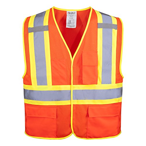 XSHIELD XS0100,High Visibility Safety Vest with Silver Stripe,ANSI/ISEA 107-2015 Type R Class2 Not FR (M, Orange)