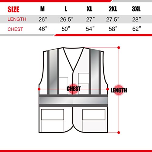 - MULTI-FUNCTION POCKETS: This safety vest comes with 4 Pockets. 1 Cellphone pocket with Velcro flap on the left chest, 1 pen pocket on the right chest,and 2 lower external pockets with flap.