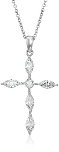 -. Title : Platinum-Plated Sterling Silver Swarovski Zirconia Marquise Round Cross Pendant Necklace, 16"+2" Extender