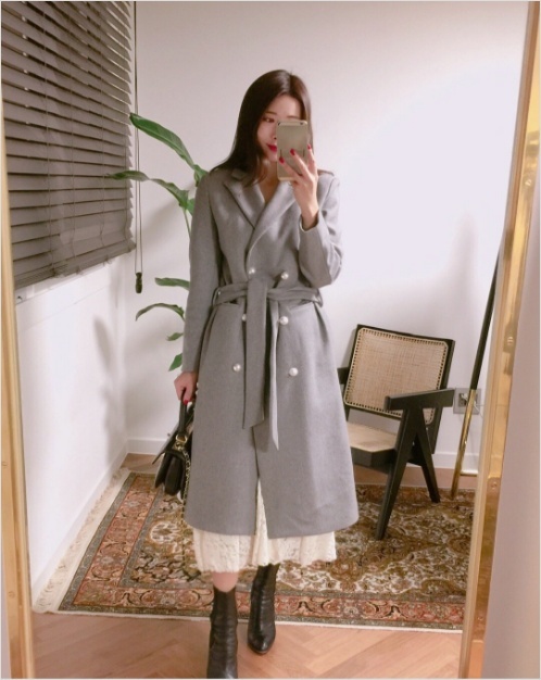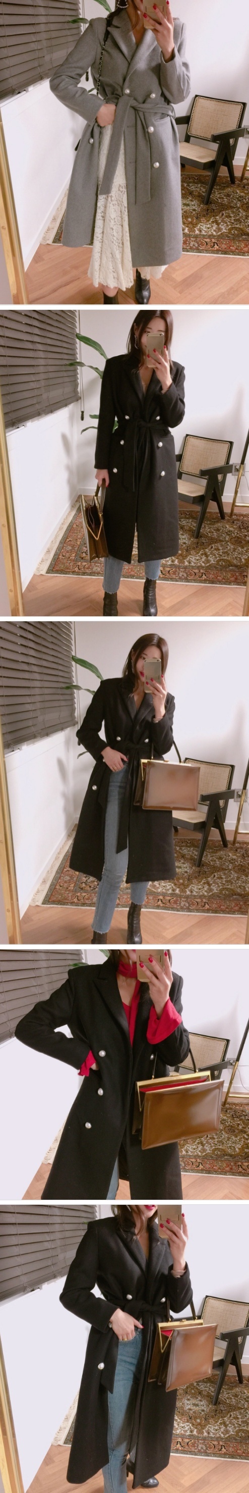 Women`s Faux Pearl Button Double Breast Coat Gray Black