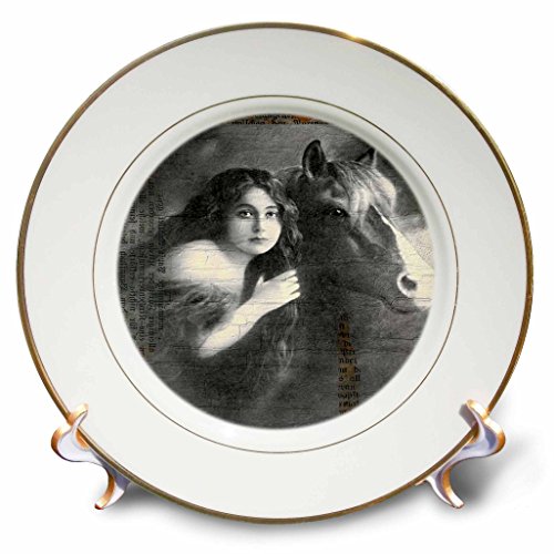 3dRose cp_6409_1 Vintage Lady and Horse Porcelain Plate, 8-Inch