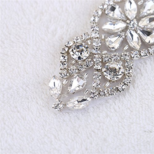 34 Inches Rhinestone Trims Belt Iron on Bridal Belts Rhinestone Appliques Embellishment Pearls Beaded Bridal Appliques with Extra Ribbon for Wedding Dress Bridal Accessories (RA series)