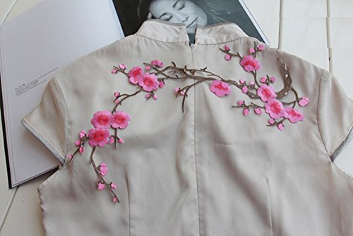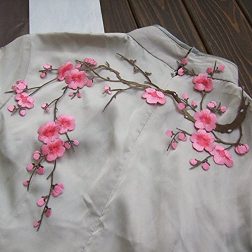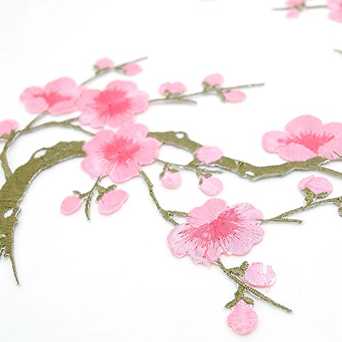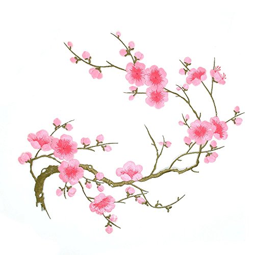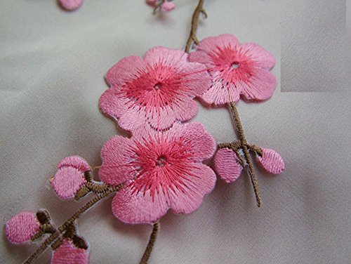 CUTEHILL Iron on Patches, Flower Applique Patches, Embroidery Patches, Big Pink Plum Blossom Embroidery Applique, 14.1"x7.5" (36x19cm)