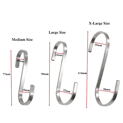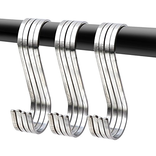 Heavy Duty & Economical: These heavy duty S hooks are made of premium stainless steel,durable and rust resistant,can offer sturdy support for your iron pans or other heavy tools. Set of 12 pcs Metal S hooks,can meet all your needs of storage solutions for your kitchen, bathroom, closet, garden, office at the meantime