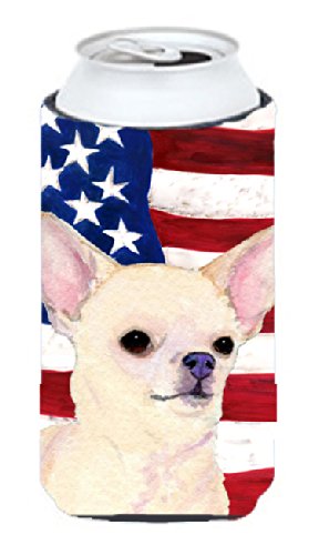 USA American Flag with Chihuahua Tall Boy Beverage Insulator Beverage Insulator Hugger