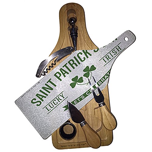 Space Case 성패트릭의 일(날)Lucky Irish와인&치즈 세트 유리 커팅 도마 보드