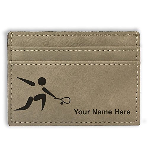 -. Binding : Apparel -. Brand : SkunkWerkz -. ClothingSize : Medium -. Color : Light Brown -. Department : mens -. EAN : 0654975842044 -. Feature : The Money Clip Wallet is laser engraved with the image that you see in the photo. / Your name or personalized message will be engraved on the wallet for free. / Synthetic leather construction. Includes space for 3 credit cards. / You may have one line of engraved text - 20 characters maximum. / Click the "Customize Now" button to begin customizing your wallet. -. ProductGroup : Apparel -. ProductTypeName : ACCESSORY -. Size : Medium -. Title : Money Clip Wallet - Squash Player - Personalized Engraving Included (Light Brown) -. UPC : 654975842044