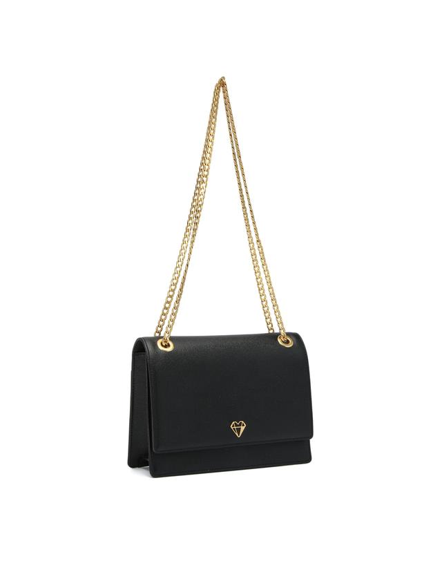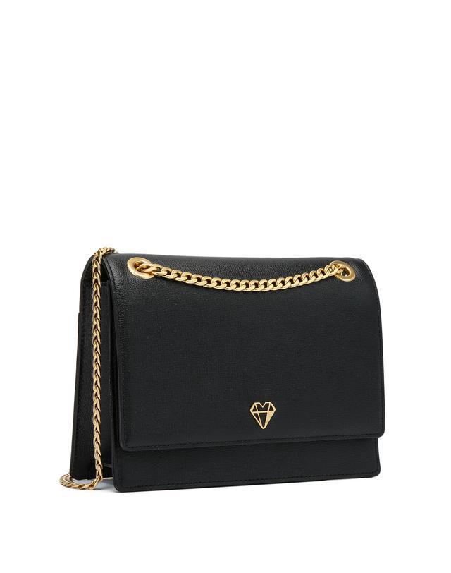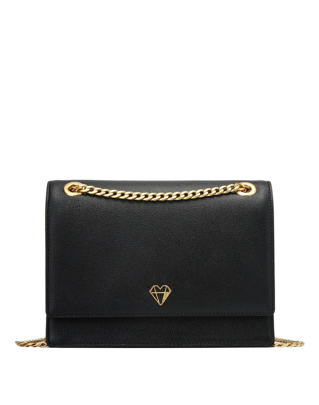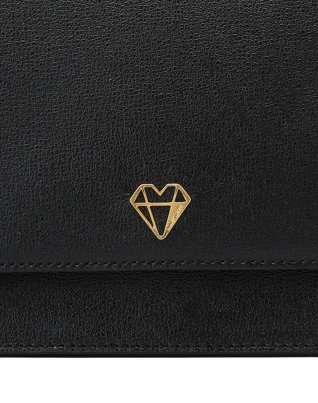 심플한 박스형의 디자인에 쁘띠 다이아몬드 패턴의 메탈 장식을 매치하여 포인트를 준 숄더백입니다.