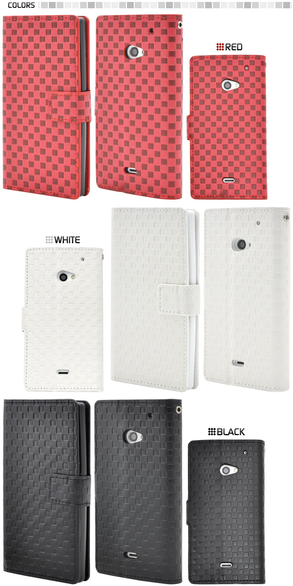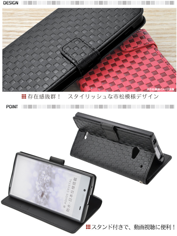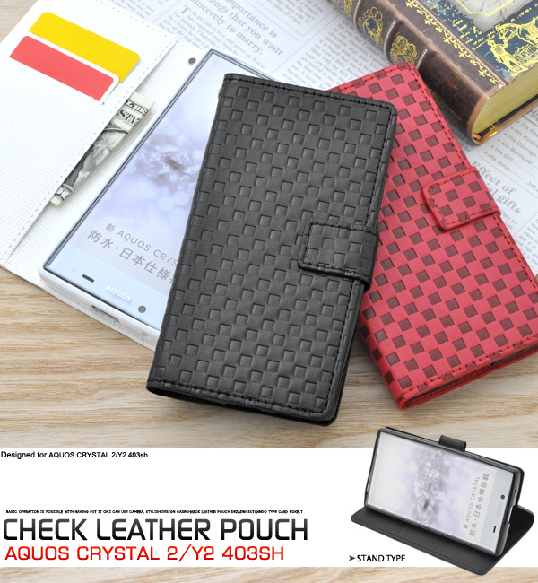 市松模様レザーデザインのAQUOS CRYSTAL 2/Y2 403sh用スタンドケースポーチ。