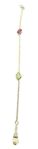 -. Title : Multicolor Gemstones 10" Anklet 14k Yellow Gold Chain with Lobster Lock