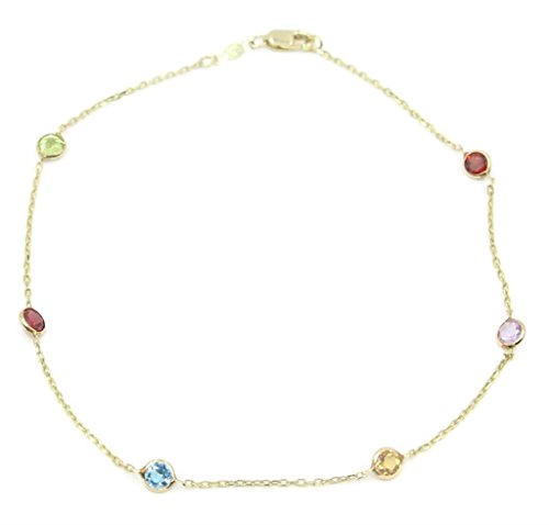 -. Feature : Multicolor Gemstones 10" Anklet 14k Yellow Gold Chain with Lobster Lock