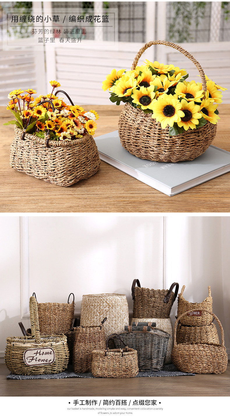 创意篮子干花插花藤编草编花篮家居客厅室内装饰品竹编花盆小摆件