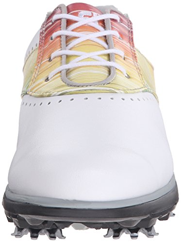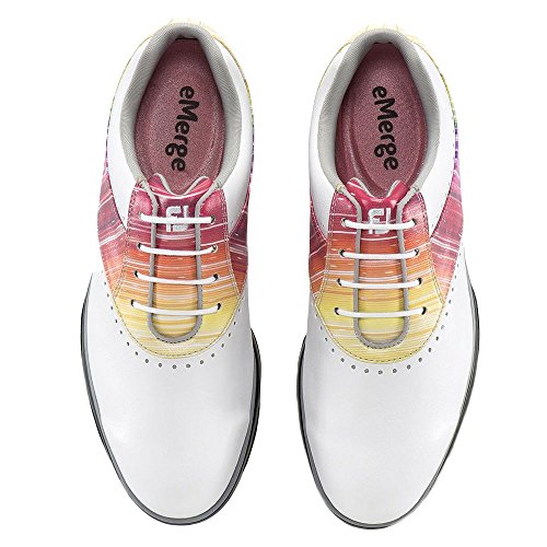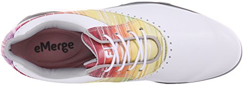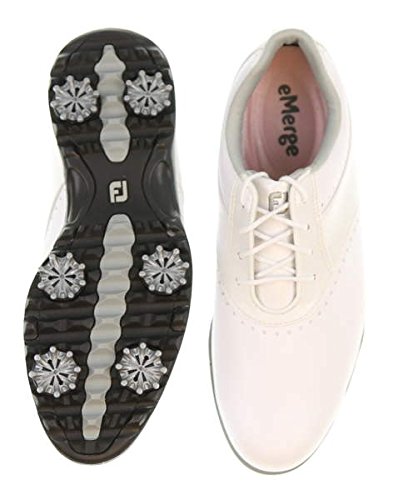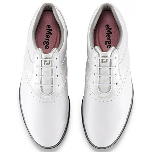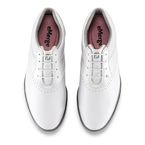 Binding : Apparel Product Description Emerge yourself in style with the FootJoy® eMerge sneakers. Leather and synthetic upper. Made with water-resistant technology. Full-rounded toe box. Closely contoured to match the shape of the foot. PillowSof™-molded foam for optimal comfort. Textile lining and insole. Synthetic midsole. DuraMax™-rubber outsole provides turf gripping performance and durability. Imported. Measurements: Weight: 11 oz Product measurements were taken using size 9, width M. Please note that measurements may vary by size. 0