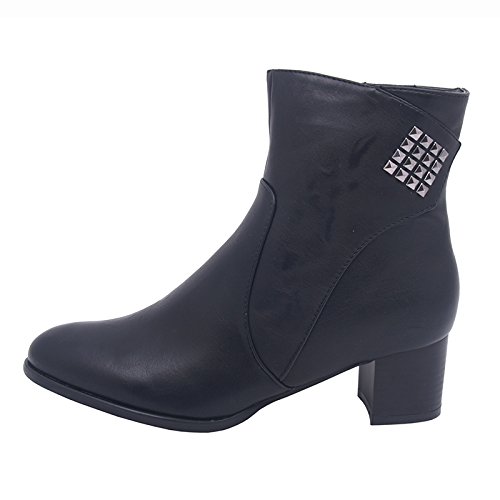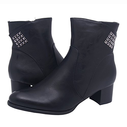 -. Title : Luxuriöse gefütterte Stiefel mit Nieten und Fell in zeitloser Eleganz, Damenschuhe, Modell 1307400112002145, mit topmodernem Reißverschluß. Schwarz. Ideal für Herbst/Winter.