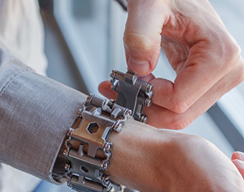 -. Feature : FEATURING 29 TOOLS: #1-2 phillips, 1/4" box wrench, 3/16" screwdriver, 6mm hex drive, 1/4" hex drive, oxygen tank wrench, 3/16" hex drive, 1/8" hex drive, 3/16" box wrench, 3/32" hex drive, 3/32" screwdriver, 1/8" flat screwdriver, 4mm hex drive, 8mm box wrench, 3mm hex drive, 5/16" screwdriver, 3/8" box wrench, 1/4" flat screwdriver, #1 phillips, 6mm box wrench, #2 phillips, carbide glass breaker, pick/sim card tool, cutting hook, 1/4" socket drive, bottle opener, #2 square drive. / WEARABLE MULTI-TOOL: A collection of interchangeable links, each designed to offer a variety of tools that allow you to solve everyday problems or respond to more critical situations. Wear the Tread not only for the things you can accomplish, but how it looks on your wrist. / BE PREPARED: The greatest multi-tool is the one you have when you need it. Tread empowers you to solve those everyday problems or respond to more critical situations. You will be surP.R.Ised as well as inspired by the diverse number of opportunities you will have to use this handy problem-solver. / GOES ANYWHERE: Tread doesn't ever need to leave you. Ever! Tread goes anywhere you go. On the plane, to school, out to dinner, to the office, to Disneyland with the family, hiking in Patagonia, or salmon fishing on the Alta River in Norway. / CUSTOMIZE THE TREAD: 29 different tools in 10 links can be assembled multiple ways to customize this