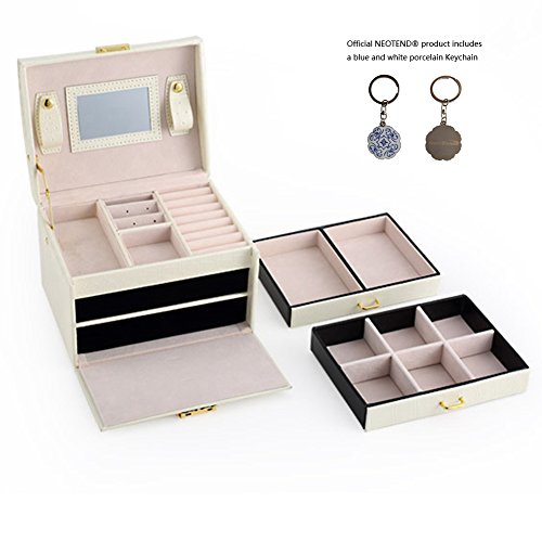 -. Title : NEOTEND Leather Jewelry Box Storage Organizer Case with Mirror and Lock