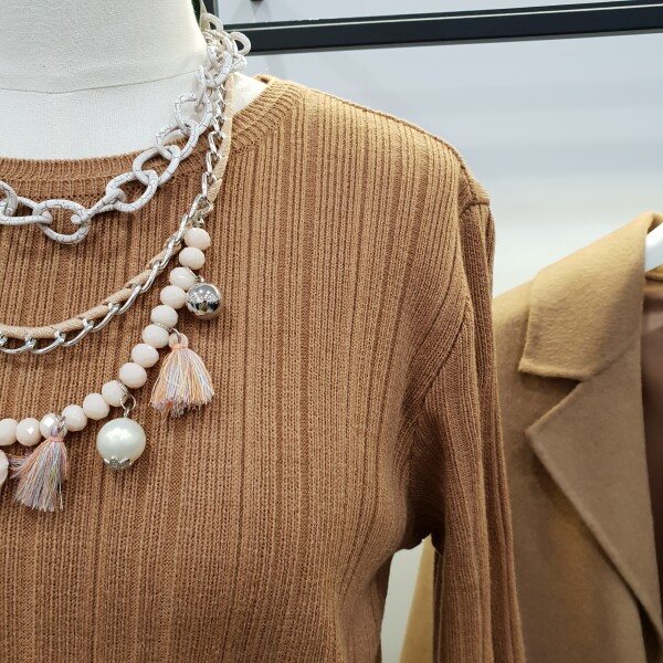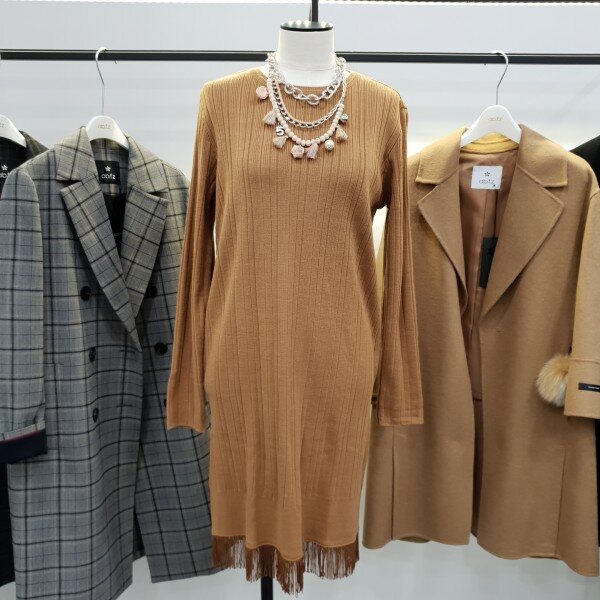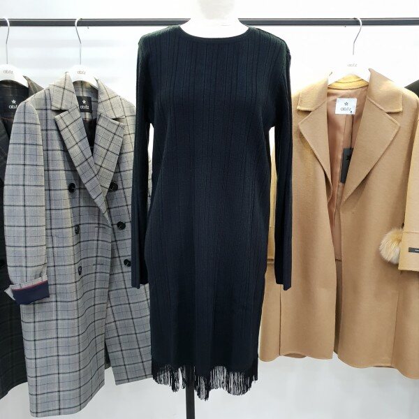 밑단 수술디테일로 포인트살린 슬림라인 골지니트원피스*함께코디한 목걸이는 별도상품