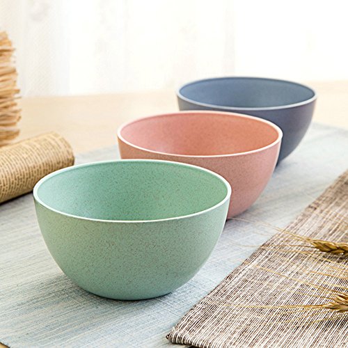 Golandstar Eco Friendly Healthy Wheat Straw Plastic Bowl for Rice,Noodles,Soup, Popcorn, Fruit, Salad,Ice Cream,Cereal Dinner Party Bowls 3pcs Set (3pcs, Blue, Green, Pink)