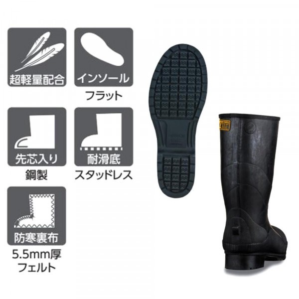 fk094igrjs鋼製先芯入りで、落下物などからつま先部分を護ります裏布にはアルミ蒸着を使用しているので防寒にも サイズ 後丈:35.0cm 個装サイズ:14.8×52.2×40cm 重量 個装重量:3260g 生産国 中国 先芯入りで使いやすい長靴 鋼製先芯入りで、落下物などからつま先部分を護ります裏布にはアルミ蒸着を使用しているので防寒にも
