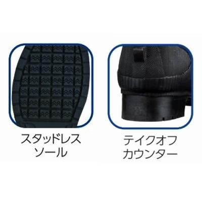 鋼製先芯入りで、落下物などからつま先部分を護ります。裏布にはアルミ蒸着を使用しているので防寒にも。