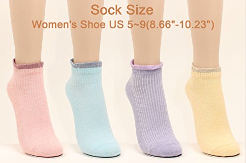 -. Feature : DESIGN : 4 Pairs of Top Lace(Glitter) Colorful Cotton Ankle Socks For Women / SIZE : One Size Fit / Reference : Fit Womens Shoes Size : US 5-9 / 220mm~260mm / WASH : Handy Wash With Cold Water, Use Mild Detergent. Lay Flat Dry, No. Bleach, No Tumble Dry / Quality Guaranteed : All socks are produced with skillful staff and controlled by detail inspection system in Korea. If any problem, you can exchange or refund as you prefer. / WOWFOOT Socks are delivered Only via Amazon P.R.Ime service which is fulfilled by Amazon shipping service. So, you will meet the service of safety & fastest delivery