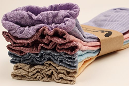 -. Title : WOWFOOT 4 Pair Women's Shiny Lace Top Socks Colorful Glitter Ankle for Ladies Girl