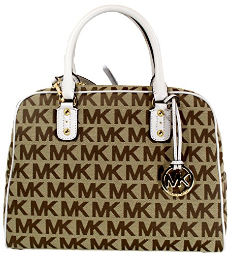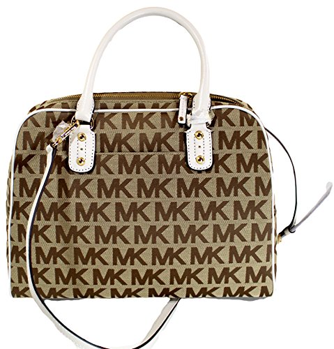 -. Title : Michael Kors MK Signature JACQUARD LG Satchel Handbag Shoulder Purse Bag