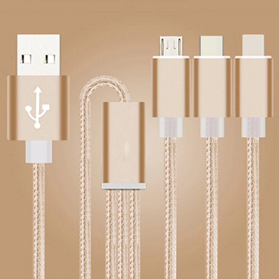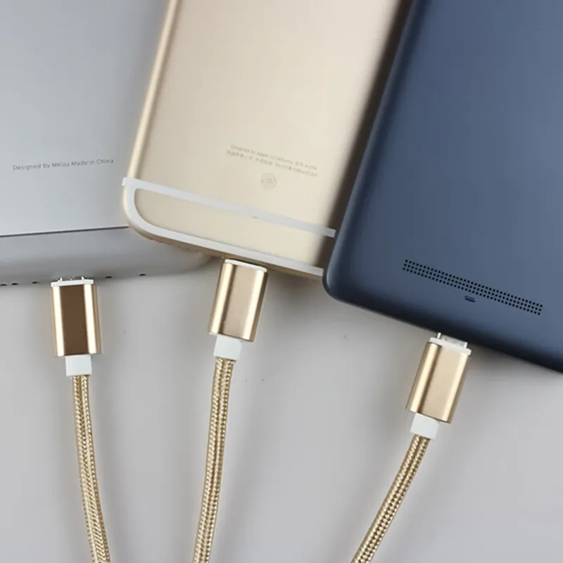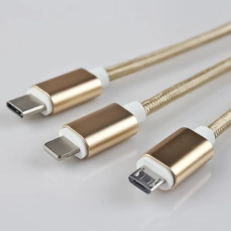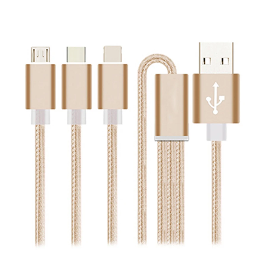 Charging Multifunctional A drag three Data Charger Cable Triple For iPhone Android Type-C Micro USB One In Three Nylon Data Line