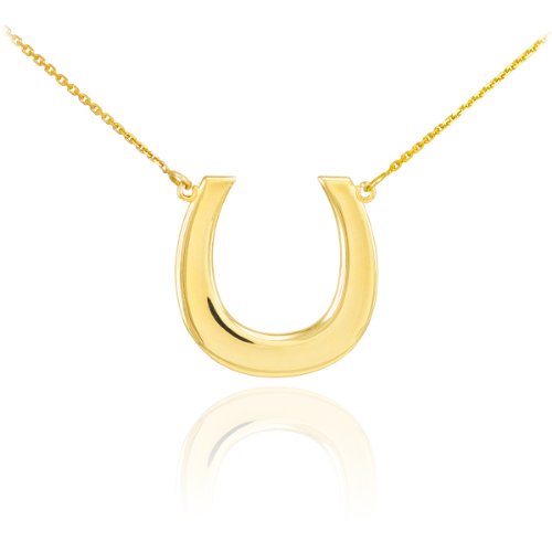 -. Feature : good luck charm horseshoe pendant doubled-mounted on either ends of dainty 14k gold chain necklace / finely crafted with solid 14 karat yellow gold in perfect polished finish / comes with free special gift packaging / made in the USA yet offered at factory direct jewelry price / ships within 24 hours from the manufacturer directly to the customers