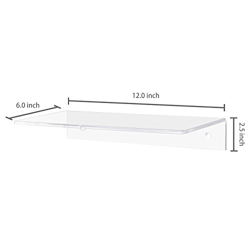 12 Inch Contemporary Clear Acrylic Floating Shelf / Wall Mounted Display Organizer