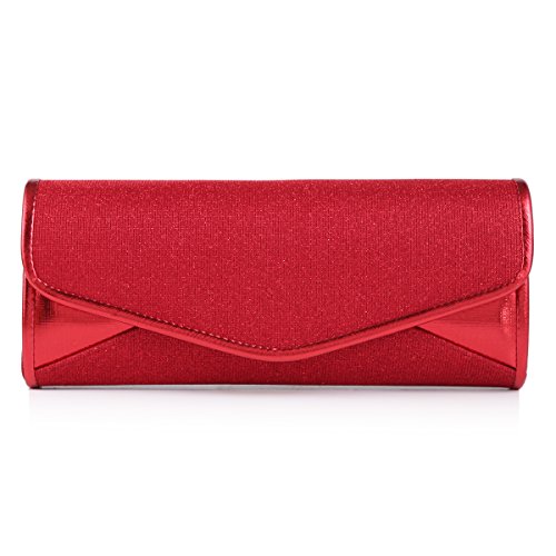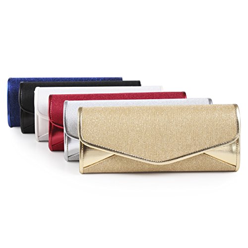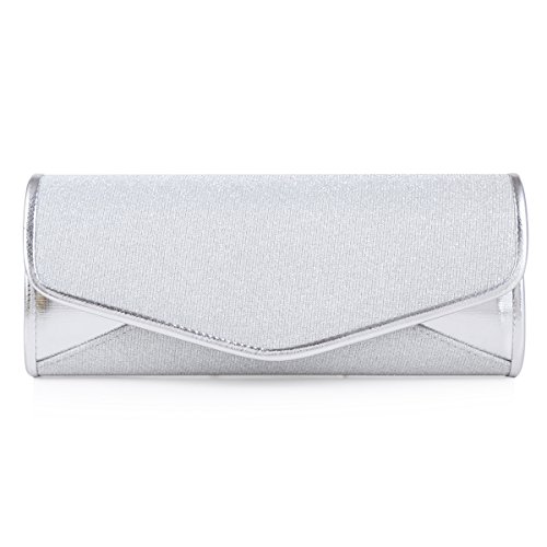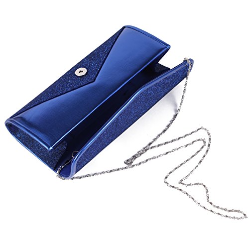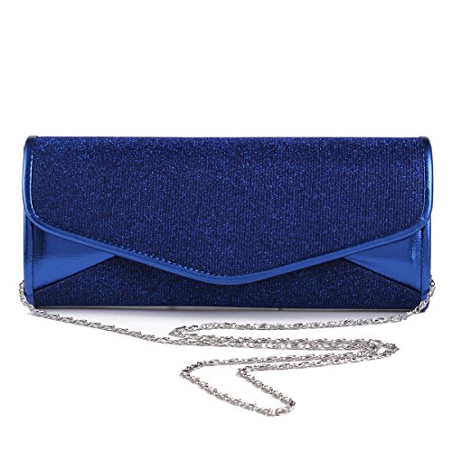 The shiny large evening bag is made of faux leather and gauze fabric with allover glitters decoration .It features magnetic hasp closure and a long detachable silver chains(drop 60cm/23.62 inch) which offers versatile carryng options as handbag ,clutch ,a shoulder bag or a crossbody bag. The bag is so roomy that it is large enough for your mobile phone ,cash ,cards ,lipstick,jewels and other important items.The bag is so royal, noble and brilliant that it will be a perfect status symbol and a bold gift for femininity.Suitable for wedding party, family reunion, prom, banquet and cocktail party and so on .Feature