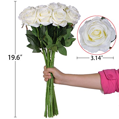 Luyue Artificial Silk Rose Flower Bouquet Wedding Party Home Decor, Pack of 10(Style 1-White)