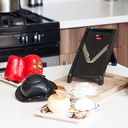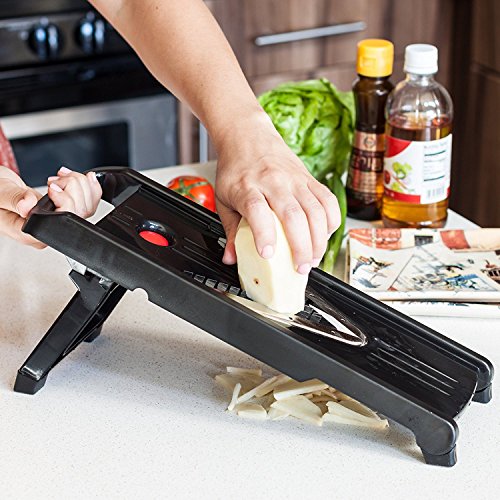 - √ MUST-HAVE KITCHEN TOOL: This mandoline food slicer belongs in every kitchen because it really does make food prep easier than ever before. You can now dice your veggies, slice your fruits and shred your cheeses to perfection in a matter of just a few short seconds with the use of our v-slicer.