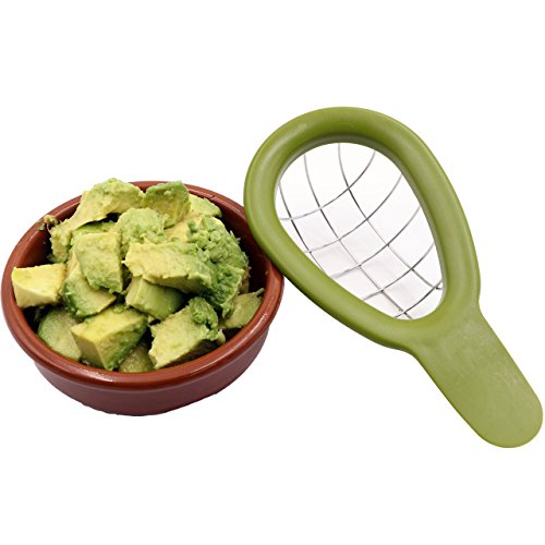 ✅ NEWEST AVOCADO tool on the market – grab an avocado, slice in half, push pitted avocado half down on the stainless grid, and twist to get perfect avocado cubes every time.
