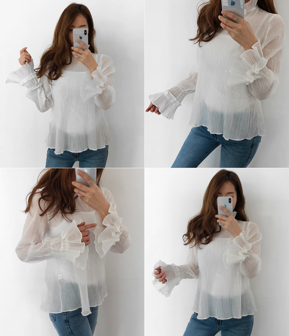 사랑스러운 무드 가득한 프릴 시스루 블라우스 소개해요-