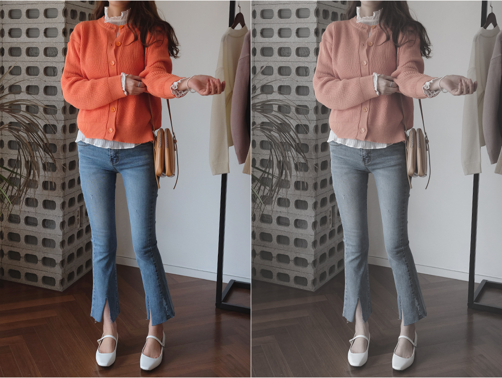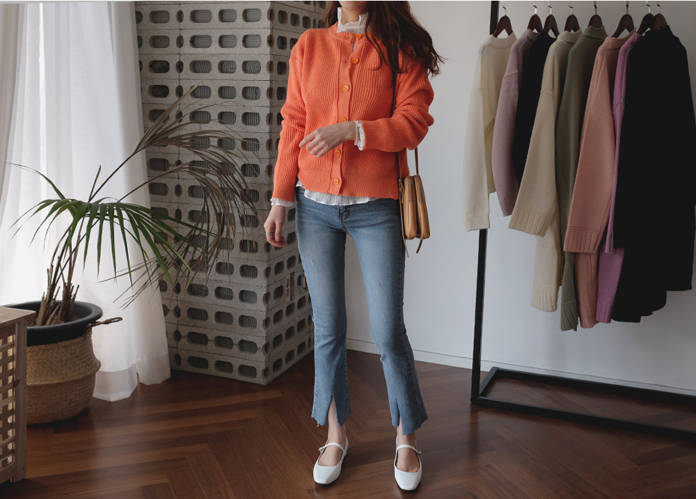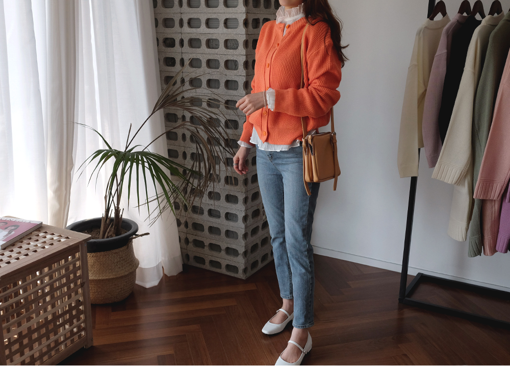 쌀쌀한 날씨에는 니트,가디건 등의 이너로 코디해주시고,