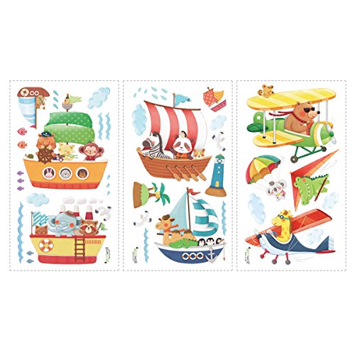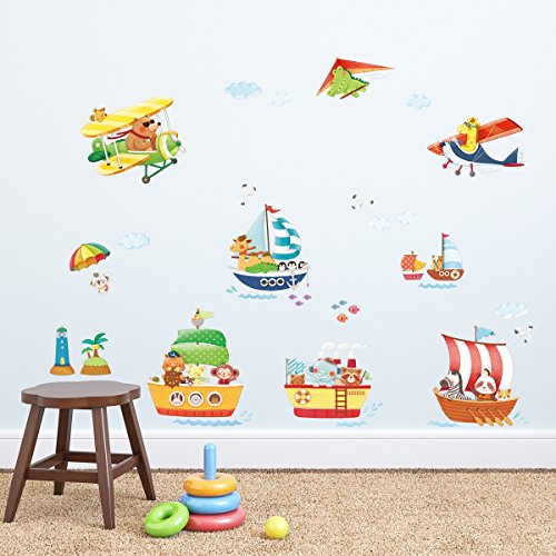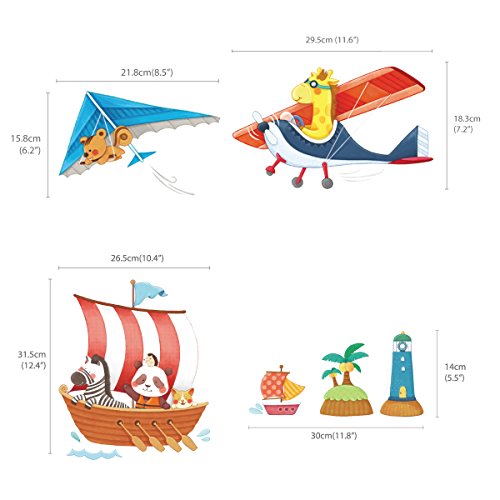 Decowall DAT-1506AC Animal Ships and Biplanes with Hang Glider Kids Wall Decals Wall Stickers Peel and Stick Removable Wall Stickers for Kids Nursery Bedroom Living Room