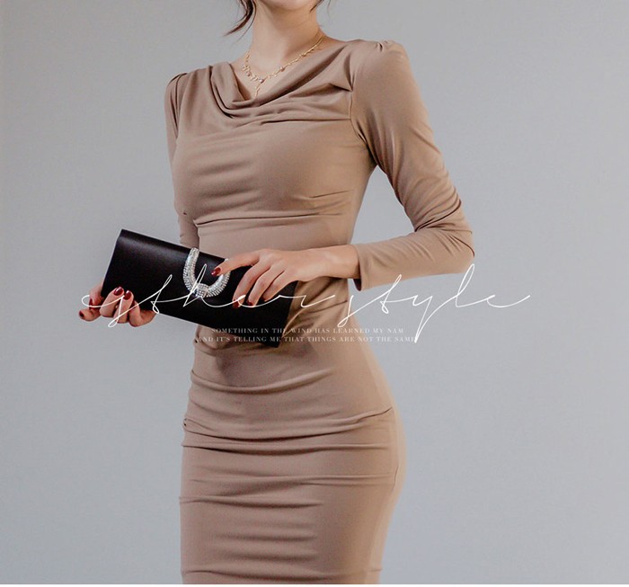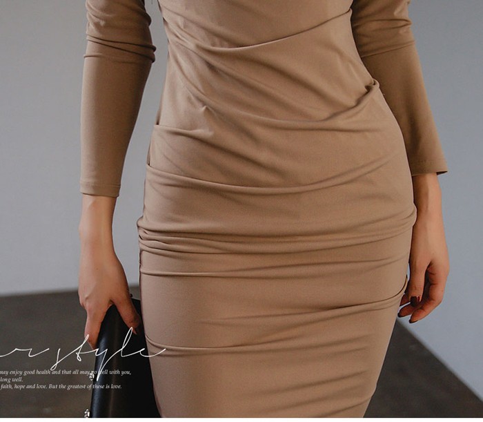 商品名:ワンピース 無地 長袖 シャーリング きれいめ