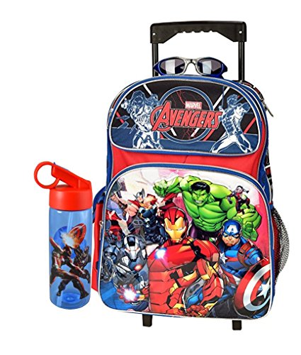 Product Description Marvel Avengers Assemble, Iron Man, Captain America, Hulk, Thor, Large 16" Rolling Backpack, One Avengers 25oz Water Bottle and One Spider Man Sunglasses Set 0