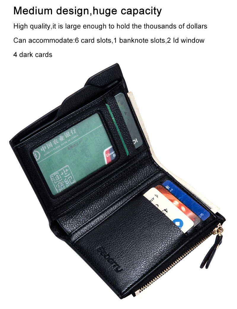 Interior:Zipper Poucht,Coin Pocket,Interior Zipper Pocket,Card Holder,Photo Holder,Note Compartment
