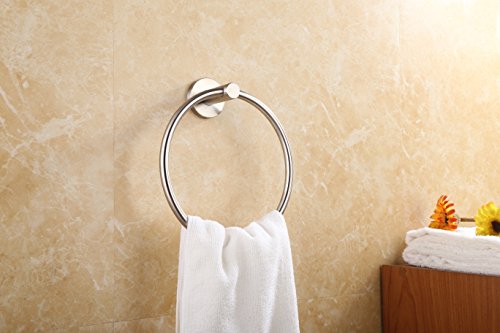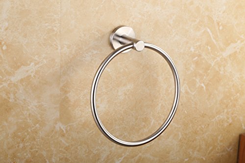 BRUSHED NICKEL FINISH - this towel ring brings subtlety and effortless style to your bathroom. You can have an essential bathroom accessory that not only does the job, but looks the part. If your bathroom is in need of a makeover, but not sure how to improve it, having a brushed nickel finish towel ring, will certainly bring a look you're hoping for.